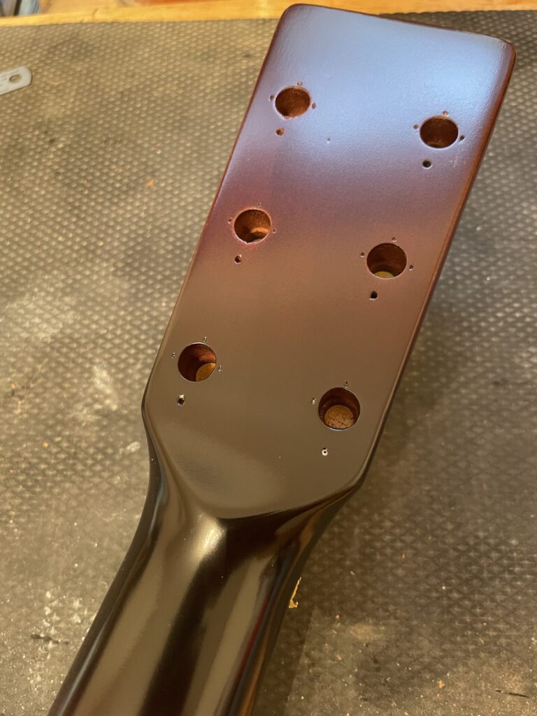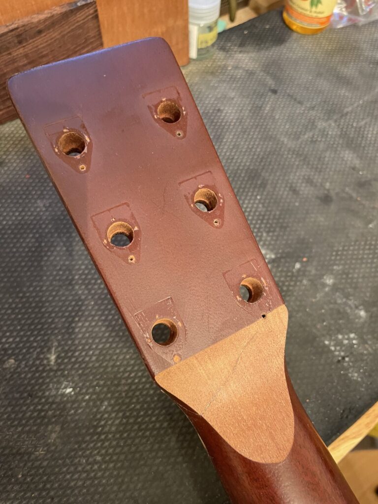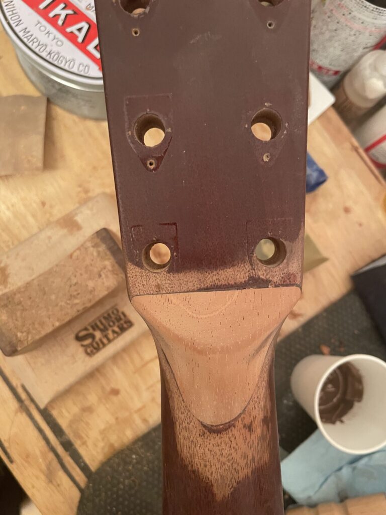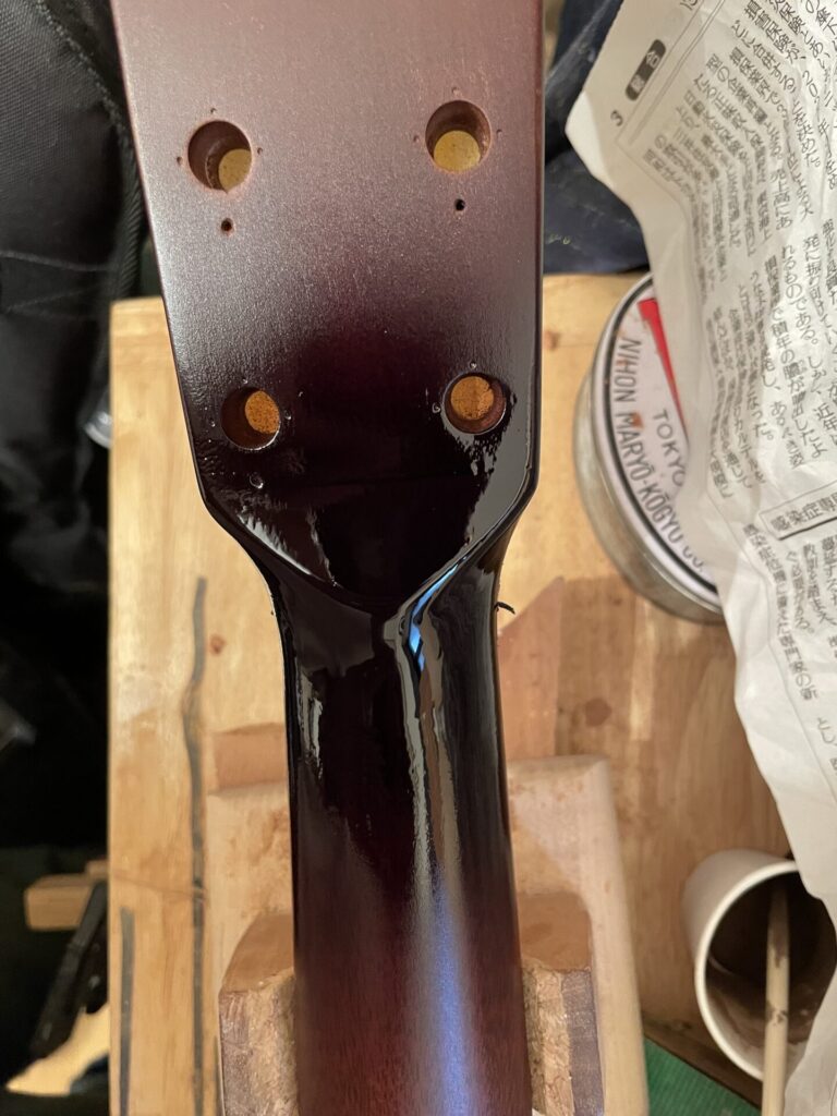 ここまでやってあげれば、見た目にも強度的にも不安なく使えますね!ネック質量もUPしてサウンドがより力強くなりました。
